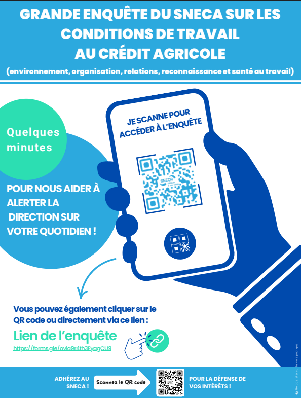 Dans le cadre de notre mission de reprĂ©sentation et d'amĂ©lioration continue de votre environnement professionnel, nous lançons, par le biais du SNECA National, une enquĂȘte majeure portant sur vos conditions de travail.